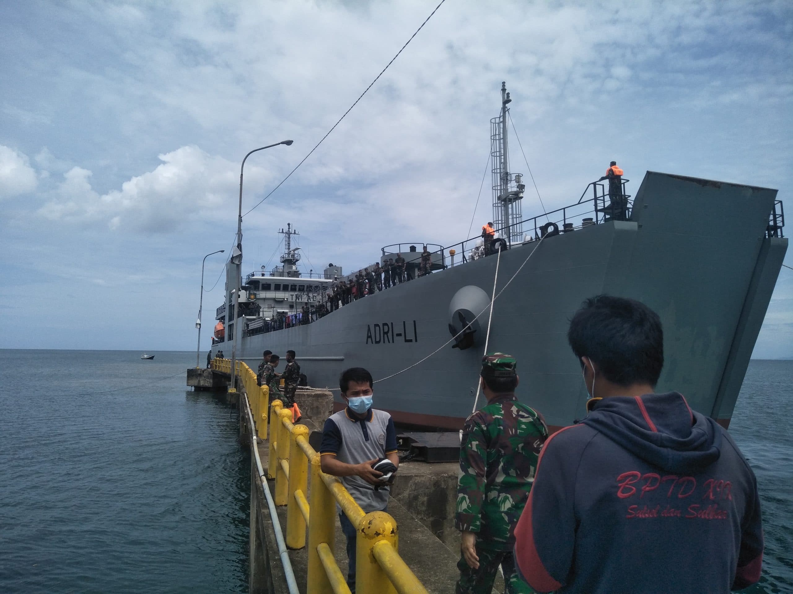 Kapal ADRI yang membawa bantuan Kasad TNI AD sandar di pelabulahan Ferry Mamuju.
