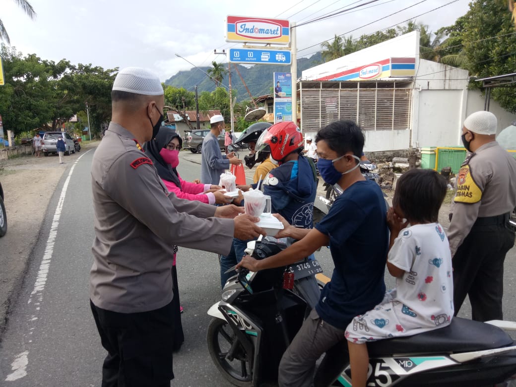 Kapolsek Sendana sedang bagi-bagi Takjil Gratis Jelang Berbuka.