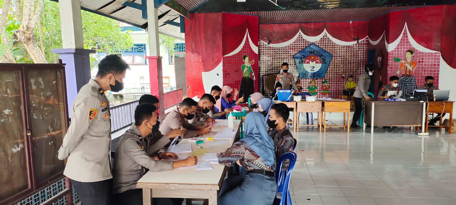 Majene, ps.co.id – Mengejar target vaksinasi sebagai upaya percepat penanganan pandemi Covid-19, Polres Majene bersama pihak lainnya terus saja menyasar berbagai pihak baik perkantoran, sekolah, rumah ibadah, pesantren, pasar hingga desa pelosok.