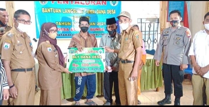 Polman,penasulbar.co.id – Bhabinkamtibmas Desa Bunga-Bunga, Bripka Abdul Wahab bersama perangkat Desa Bunga-Bunga melaksanakan kegiatan penyaluran bantuan langsung tunai (BLT-DD) yang bersumber dari Anggaran Dana Desa (ADD) kepada warga yang terdampak Covid-19 di Aula Kantor Desa Bunga-bunga Kecamatan Matakali Kabuoaten Polman, Selasa (8/6/21).