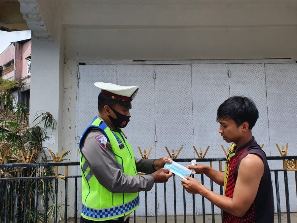 “Kegiatan ini dilaksanakan Agar meningkatkan kesadaran untuk disiplin dalam penerapan protokol kesehatan,” jelas Kaur Bin Ops Sat Lantas Ipda Ahmad Khaerul.
