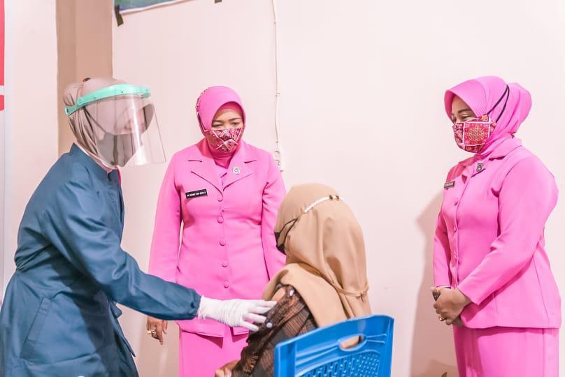 Cegah Penyebaran Covid, Ketua Bhayangkari Daerah Sulbar hadiri Vaksinasi Massal