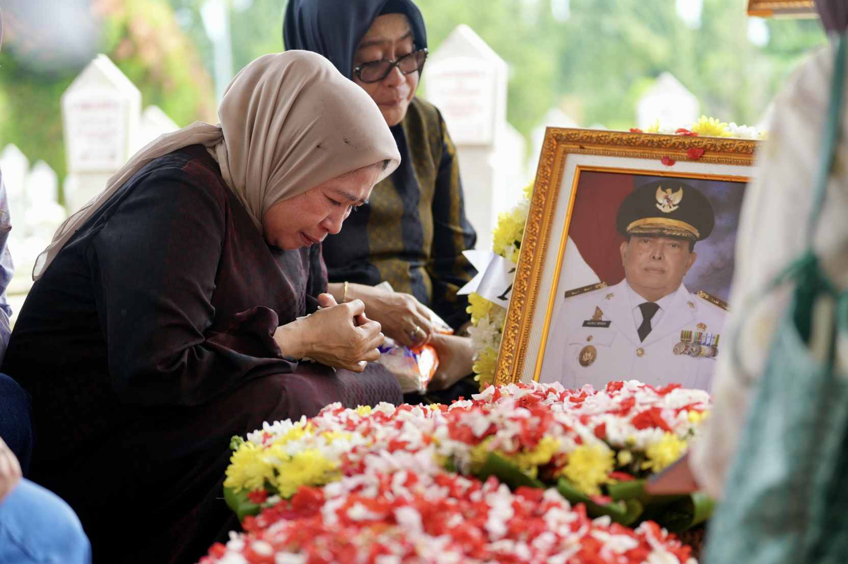 Dengan wajah tegar namun tak mampu menyembunyikan duka mendalam, Hj. Fatmawati Salim menerima lipatan bendera tersebut dan memeluknya erat. Tangis keluarga pun pecah, mengiringi detik-detik berpindahnya simbol kehormatan negara ke pangkuan keluarga yang ditinggalkan.