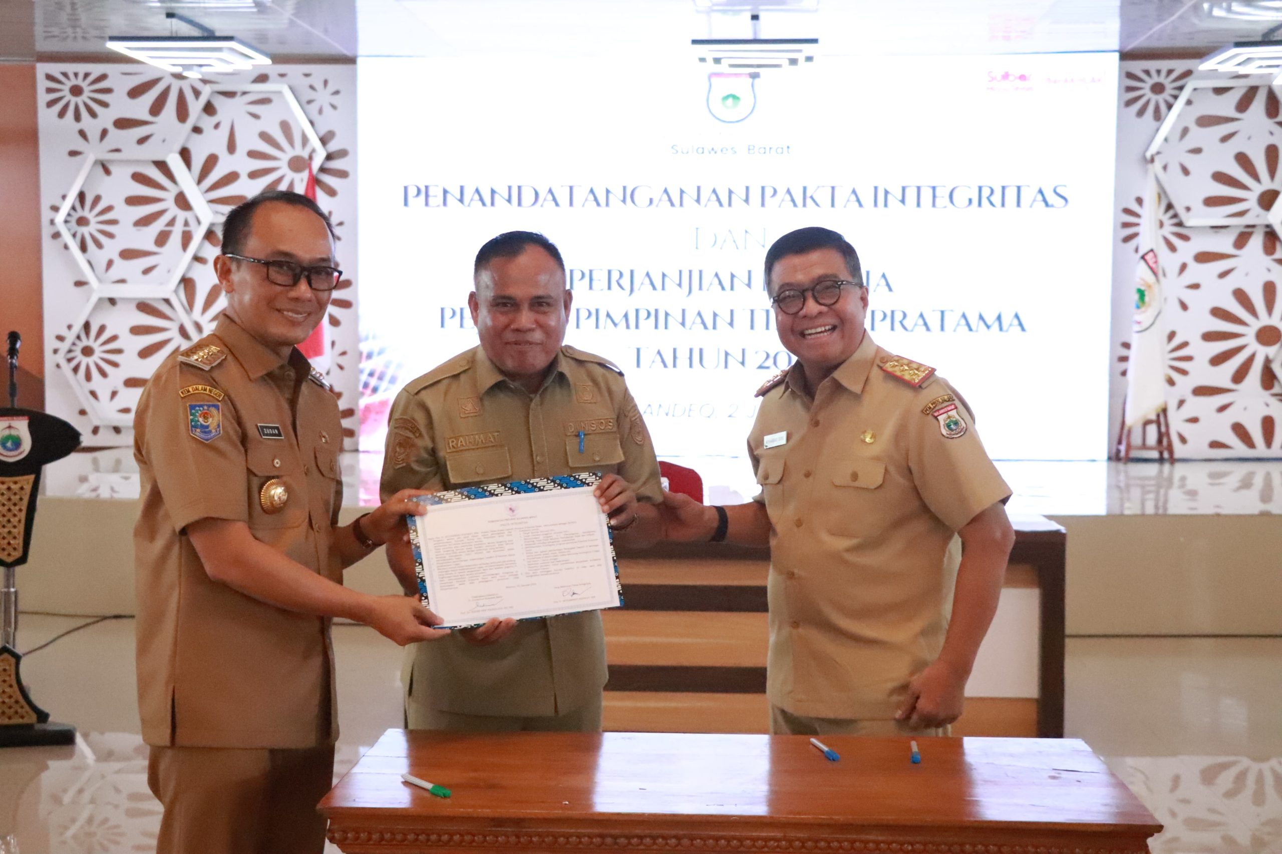 Mamuju,penasulbar.co.id – Dinas Sosial (Dinsos) Sulbar juga turut melakukan penandatangan fakta integritas yang berlangsung di gedung Graha Sandeq Kompleks Rujab Gubernur Sulbar bersama pejabat pratama Pemprov Sulbar dan dihadiri langsung Pj Gubernur Sulbar, Prof. Zudan Arif Fakrulloh dan Sekretaris Daerah Provinsi, Muh Idris, Selasa (2/1/2024).