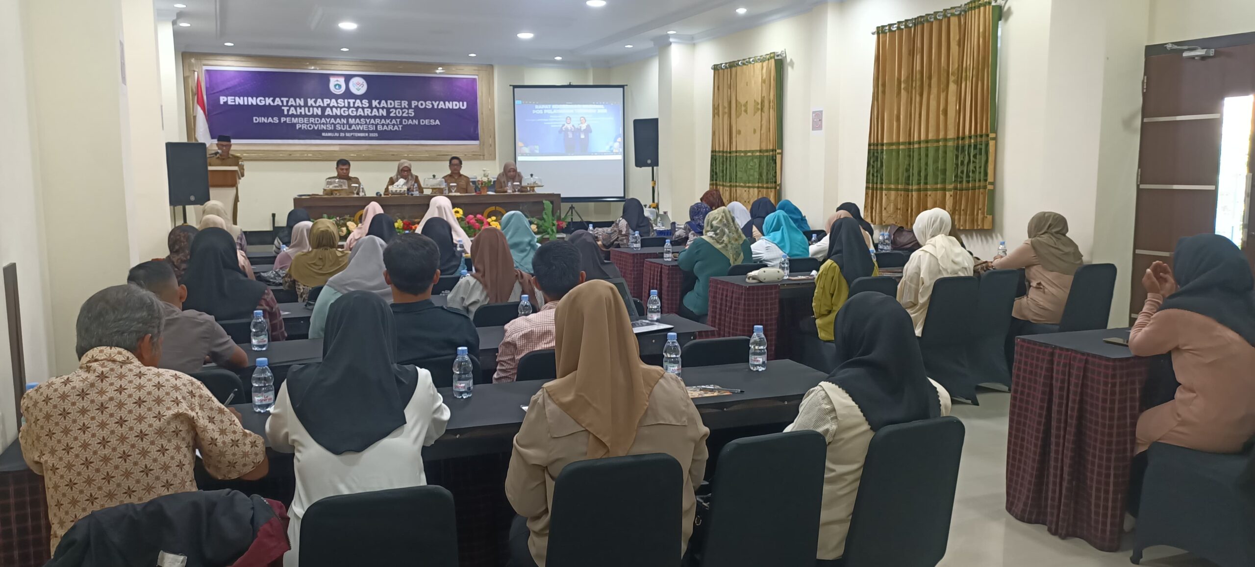 Mamuju,penasulbar.com – Dinas Pemberdayaan Masyarakat dan Desa (PMD) Provinsi Sulawesi Barat menyelenggarakan kegiatan Peningkatan Kapasitas Pengelola/Kader Posyandu pada hari Senin, 29 September 2025, bertempat di Grand Putra Hotel, Mamuju. Kegiatan ini diikuti oleh 50 peserta dari 12 desa/kelurahan yang menjadi lokus program Pastipadu tahun 2025 dan 2026, yang terdiri dari Ketua Tim Pembina Posyandu Desa/Kelurahan serta para pengelola dan kader Posyandu.