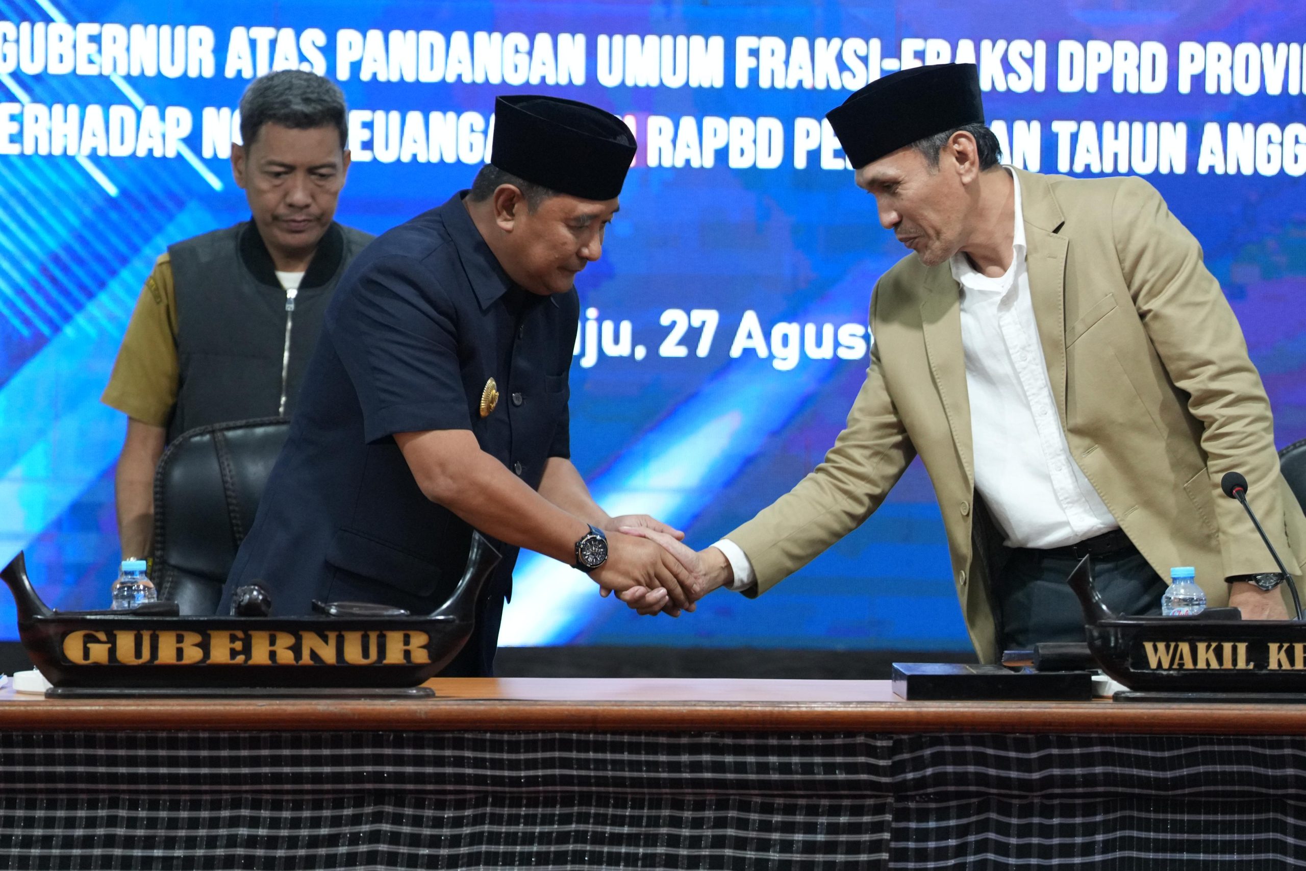 Adapun jawaban Pj Gubernur, pertama Mengenai pemenuhan unsur kepatuhan hukum terhadap rancangan Perda tentang perubahan APBD tahun 2000 anggaran 2024 telah melalui kajian formil maupun materil yang diamanatkan dalam Permendagri Nomor 15 Tahun 2003 tentang pedoman penyusunan APBD Tahun anggaran 2024.