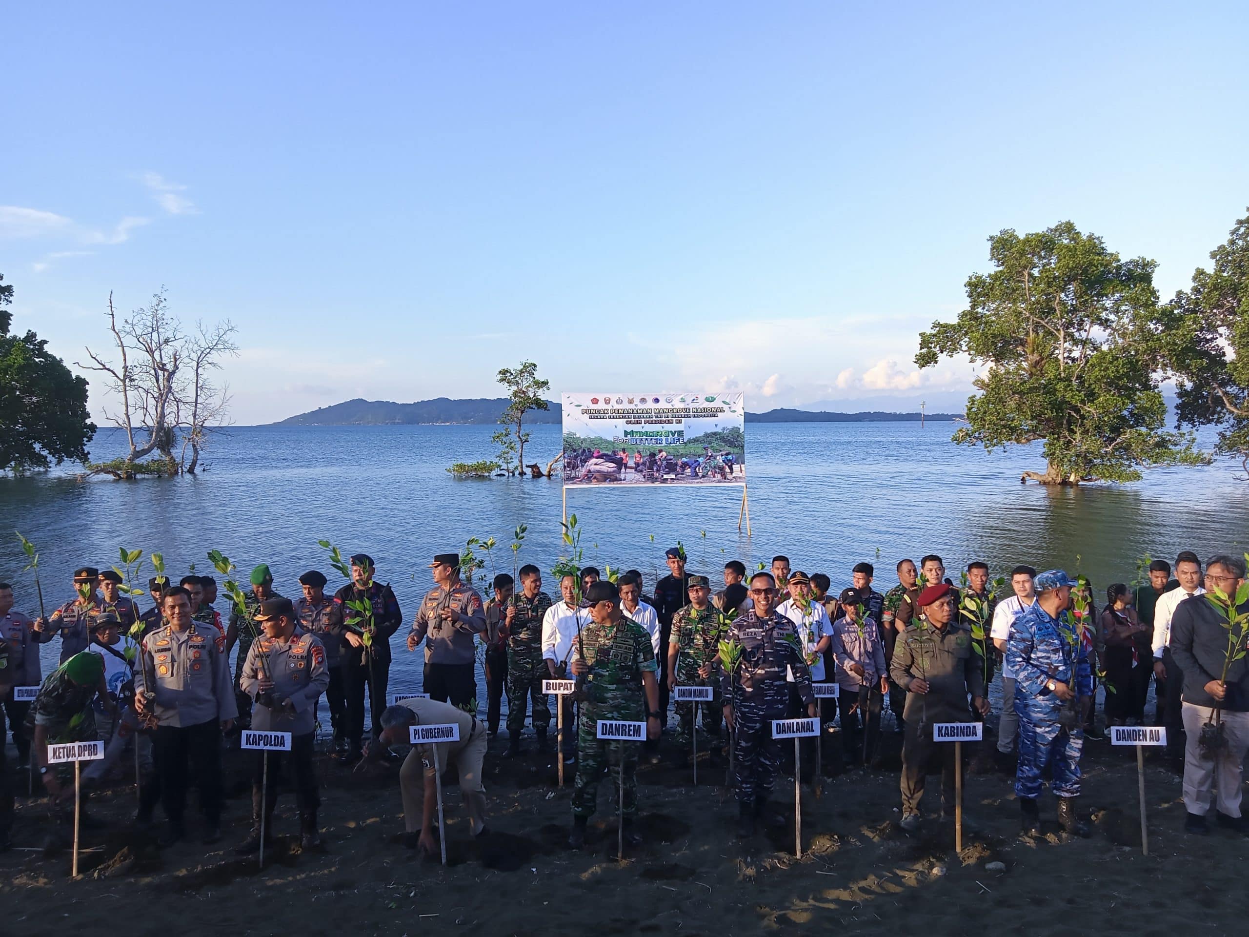 Penanaman ribuan Mangrove dilakukan di area Lanal Mamuju, yang dihadiri jajaran TNI, Polri, hingga dinas terkait Pemprov Sulbar.