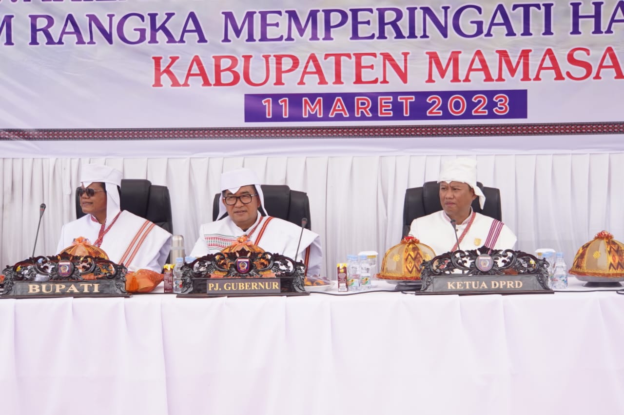 Ditengah, Pj Gubernur Sulbar Akmal Malik didampingi Bupati Mamasa, H. Ramlan Badawi dan Ketua DPRD Mamasa.