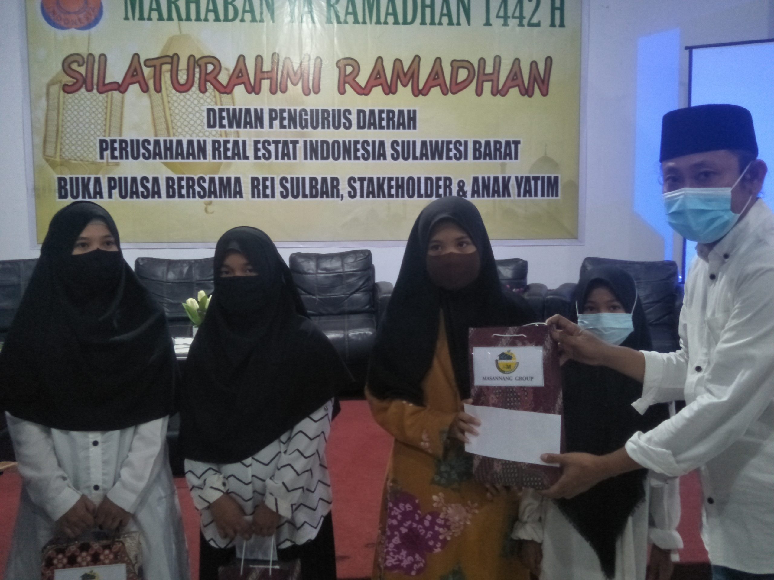 Wakil Bupati Mamuju, Ado Mas’ud memberikan santunan kepada anak yatim dalam acara Buka Pulsa bersama REI Sulbar.