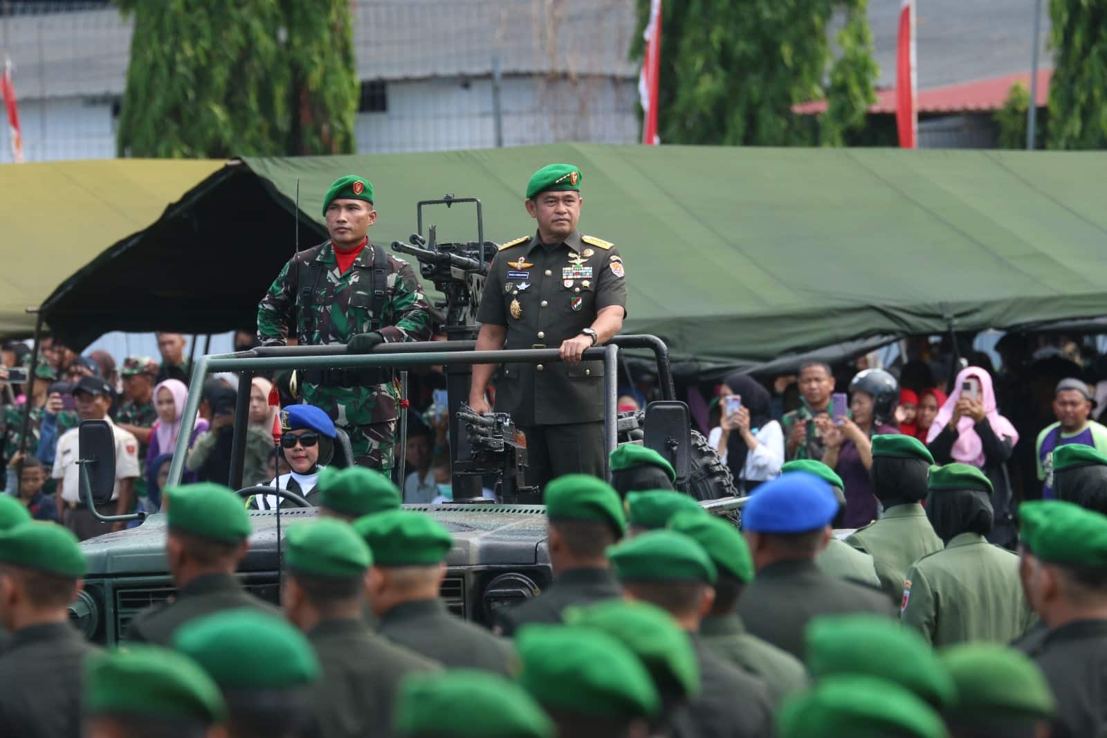 “Jadi rakyat membuat lumbung-lumbung dan berkomunikasi baik dengan kita, sehingga kita bisa berjuang bersama dengan masyarakat. Seperti diketahui kemarin, kita lakukan rangkaian kegiatan di Bantaeng, yaitu pembersihan plastik di pantai, tanam pohon, pengadaan sumur bor, serta dilanjutkan dengan upacara hari ini. Ini semua kegiatan TNI AD yang akan terus kita lanjutkan. Pelibatan dengan masyarakat ini bermakna kita bersama rakyat berjuang karena TNI lahir dari rakyat hadir untuk rakyat dan akan selalu bersama rakyat,” jelas Kasad.