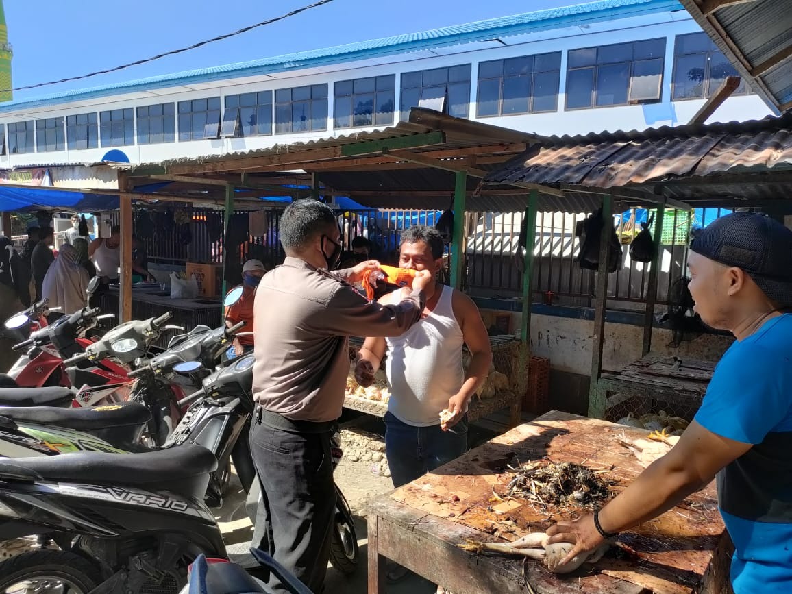 Seperti yang terlihat hari ini di pasar sentral majene, personil Polres Majene yang dipimpin oleh Kasat Binmas AKP Soewarno Kasimin melakukan himbauan tentang protokol kesehatan kepada masyarakat yang beraktifitas disekitar pasar sentral majene. (19/7/21)