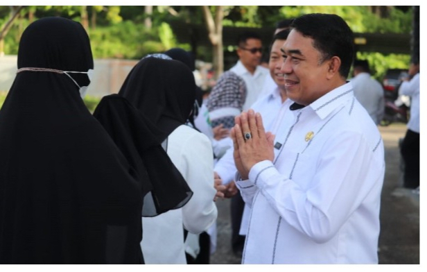 Setelah apel pagi, seluruh pegawai baik ASN maupun Pramubakti melakukan Halal bihalal untuk saling memaafkan.