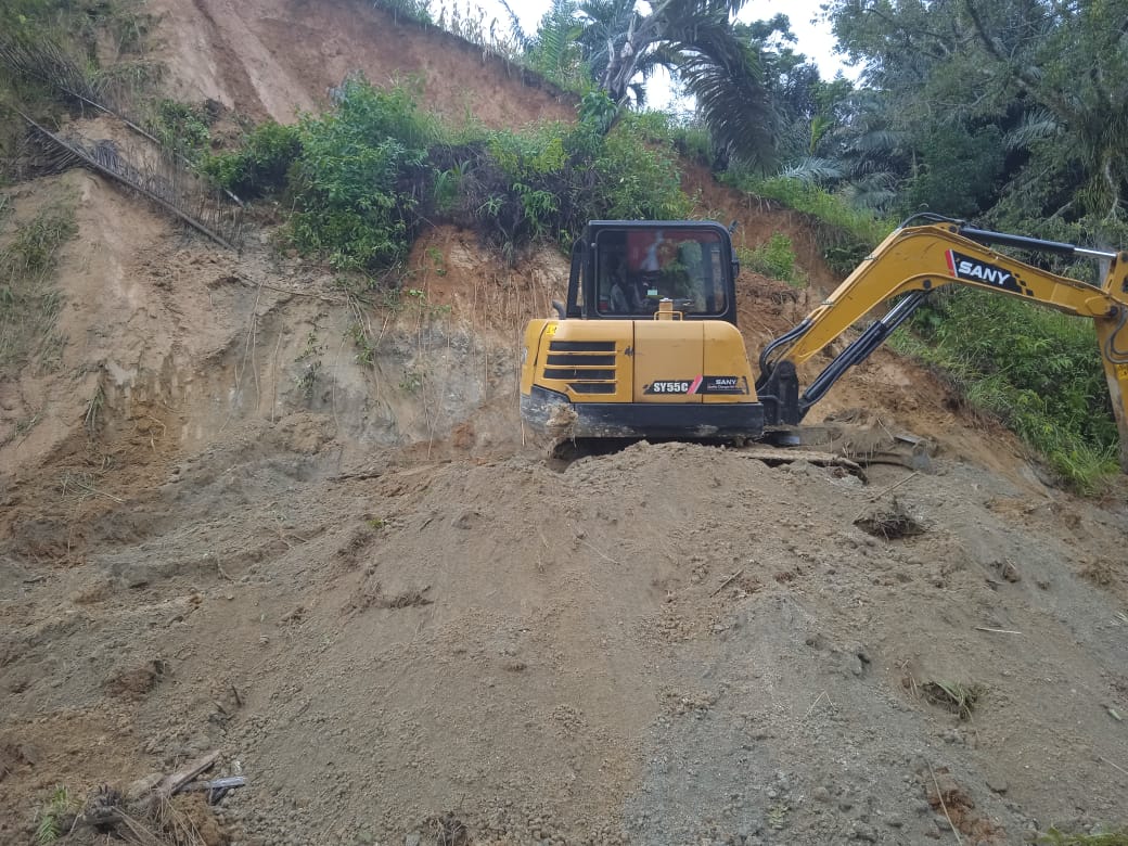 Oktavianus mengatakan, sejak menerima informasi terkait terputusnya akses jalan ke Periangan maka pihaknya langsung menurunkan satu unit alat berat untuk membersihkan material longsor.