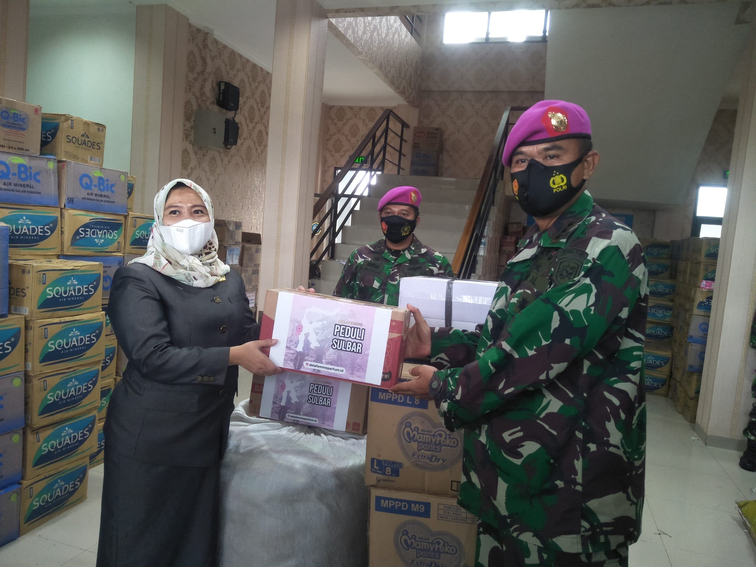 “Terimakasih kepada TNI AL khususnya Lanal Mamuju yang sudah memberikan bantuan kepada korban Gempa di Sulbar, ungkap Suraida di Mako Lanal Mamuju, Senin (25/1/2021).
