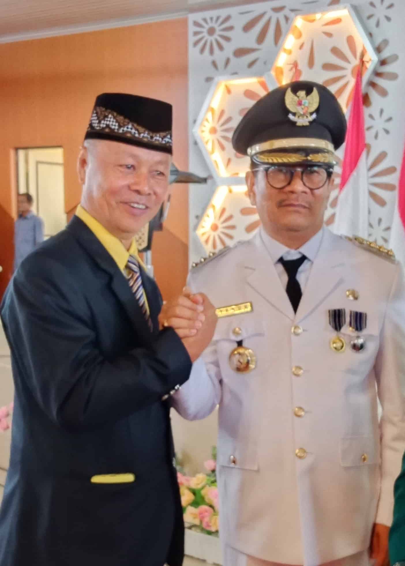 H. Sudirman menyampaikan selamat kepada Yakub F Solon atas pelantikannya sebagai pj Bupati Mamasa.