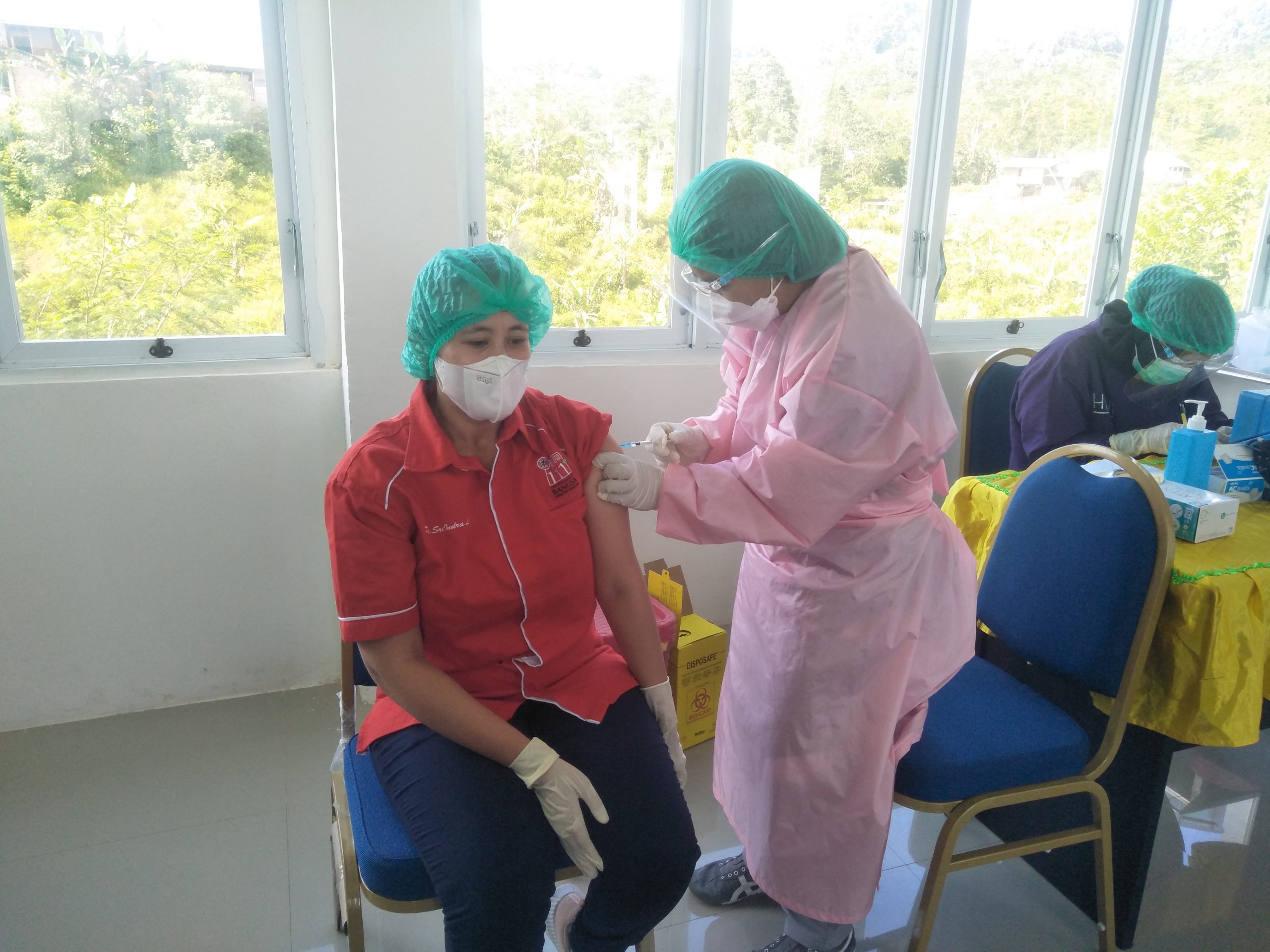 “Saya orang pertama divaksin dan aman-aman saja. Hanya sedikit agak gugup setelah melihat jarum suntiknya,” tutur dr. Cici sapaan akrapnya sambil tersenyum.