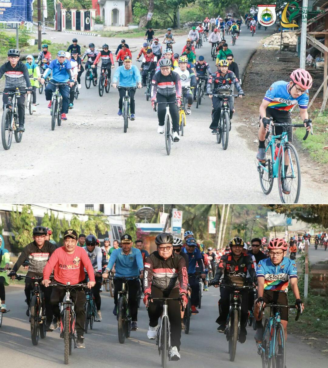 DR. Yakub F Solon bersama jajaran Pejabat Pemprov Sulbar sedang mengikuti acara Fun Bike yang diselenggarakan ISSI Sulbar. Foto : duk. Pena.