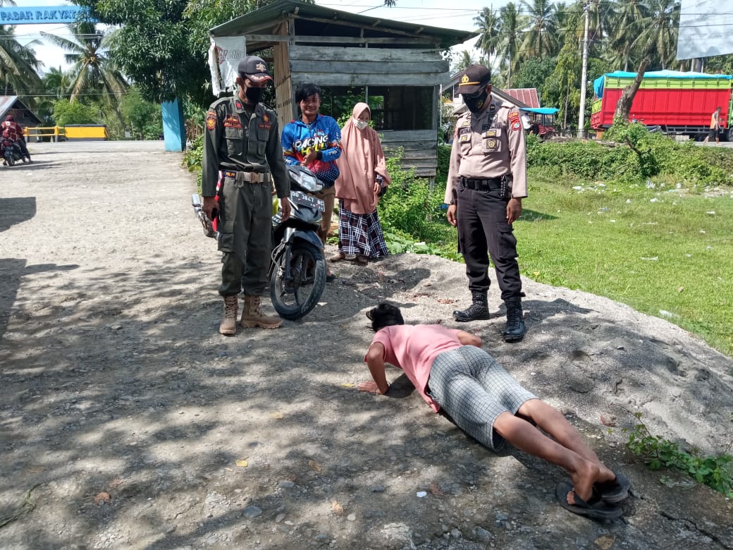 Ke empat pelanggar tersebut kami berikan teguran lisan serta Pembinaan Bela Negara berupa pengucapan Pancasila & Push Up. Ujar Wakapolsek