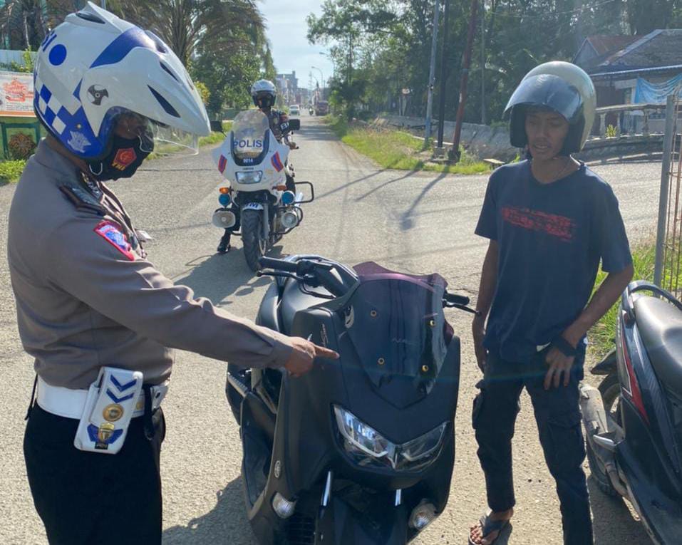 Sejumlah personel lalu lintas menghentikan kendaraan yang terlihat menggunakan kenalpot bising. Para pelanggar lansung diberi tindakan penegakan hukum sekaligus di edukasi agar tidak lagi mengulangi hal yang serupa.