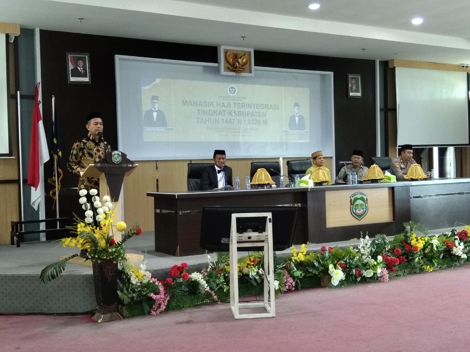 Mateng,penasulbar.com – Asisten I Bidang Pemerintahan dan Kesejahteraan Rakyat (Kesra) Pemerintah Daerah Kabupaten Mamuju Tengah, Mahyuddin, secara resmi membuka kegiatan Bimbingan Manasik Haji Terintegrasi Tingkat Kabupaten Mamuju Tengah Tahun 1447 H / 2026 M, yang digelar di Aula A Kantor Bupati Mateng, Sabtu (7/2/2026).