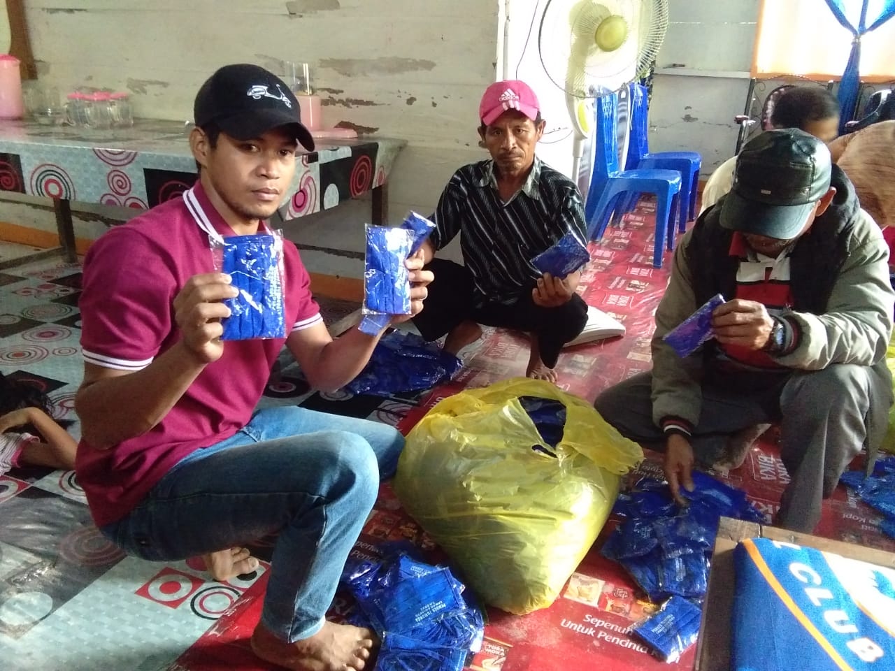 Suasana pembagian masker dan  hand sanitizer  di Desa Tumonga.