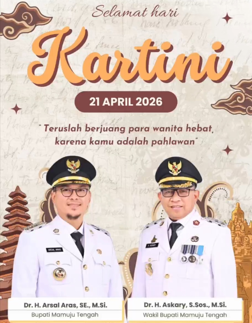 Dalam pernyataan resminya, Pemerintah Daerah Kabupaten Mamuju Tengah mengucapkan selamat Hari Kartini kepada seluruh perempuan hebat di berbagai bidang.