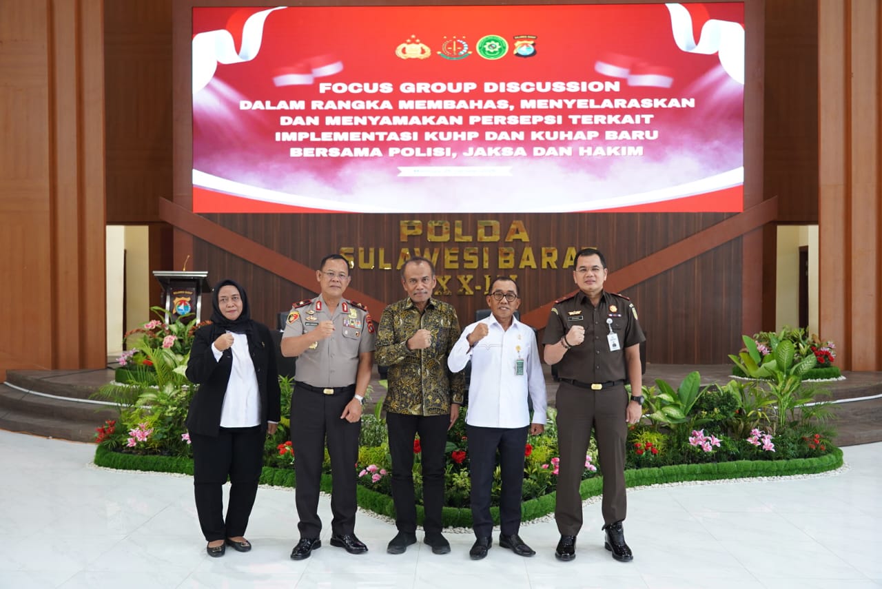 PENASULBAR.COM, MAMUJU – Wakapolda Sulbar, Brigjen Pol Hari Santoso, secara resmi membuka kegiatan Focus Group Discussion (FGD) dalam rangka membahas, menyelaraskan dan menyamakan persepsi implementasi KUHP dan KUHAP baru bersama Polisi, Jaksa dan Hakim, Senin (26/1/26) di Aula Marannu Polda Sulbar.