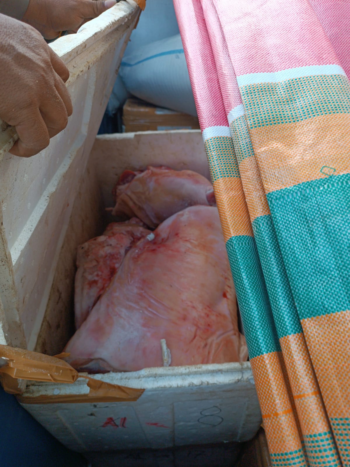 “Setelah dilakukan penolakan, truk keluar dari kawasan pelabuhan, lalu kami berkoordinasi dengan intelijen karantina untuk mengawasi pergerakan truk tersebut, dan betul saja, 10 kilometer dari pelabuhan, daging tersebut kembali berusaha dikirim menggunakan kapal ikan namun ditolak oleh nelayan sekitar,” terang Jaya.