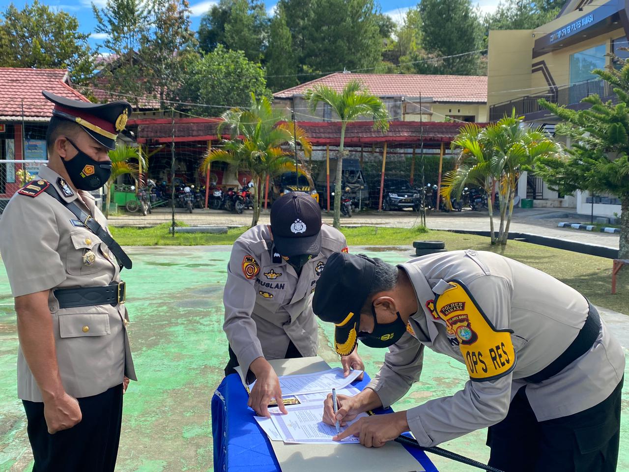 Prosesi serah terima jabatan (Sertijab) di gelar di halaman Mapolres Mamasa dan dipimpin langsung Kapolres Mamasa, AKBP Indra Widyatmoko S.I.K. diikuti seluruh personel, Jumat (10/9/2021).