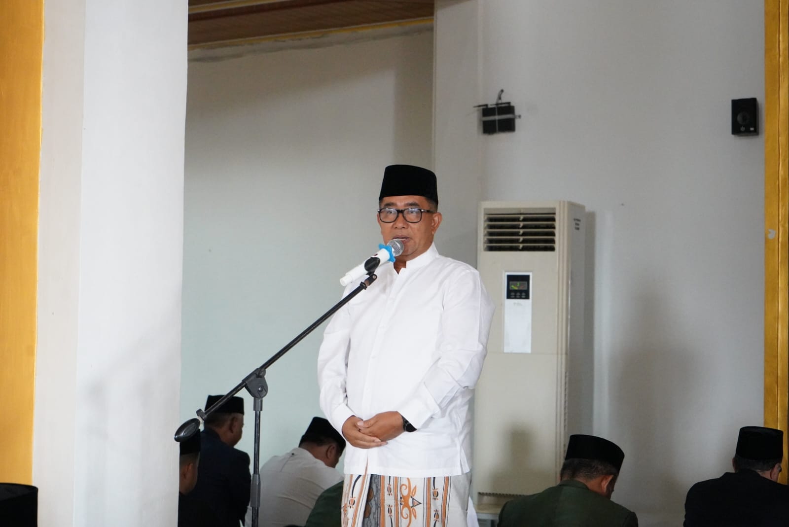 Pj. Gubernur Sulbar, Akmal Malik saat menyampaikan sambutan menghimbau kepada seluruh masyarakat untuk melaksanakan hari raya Idul Fitri 1444 Hijriyah, dengan penuh kesederhanaan.