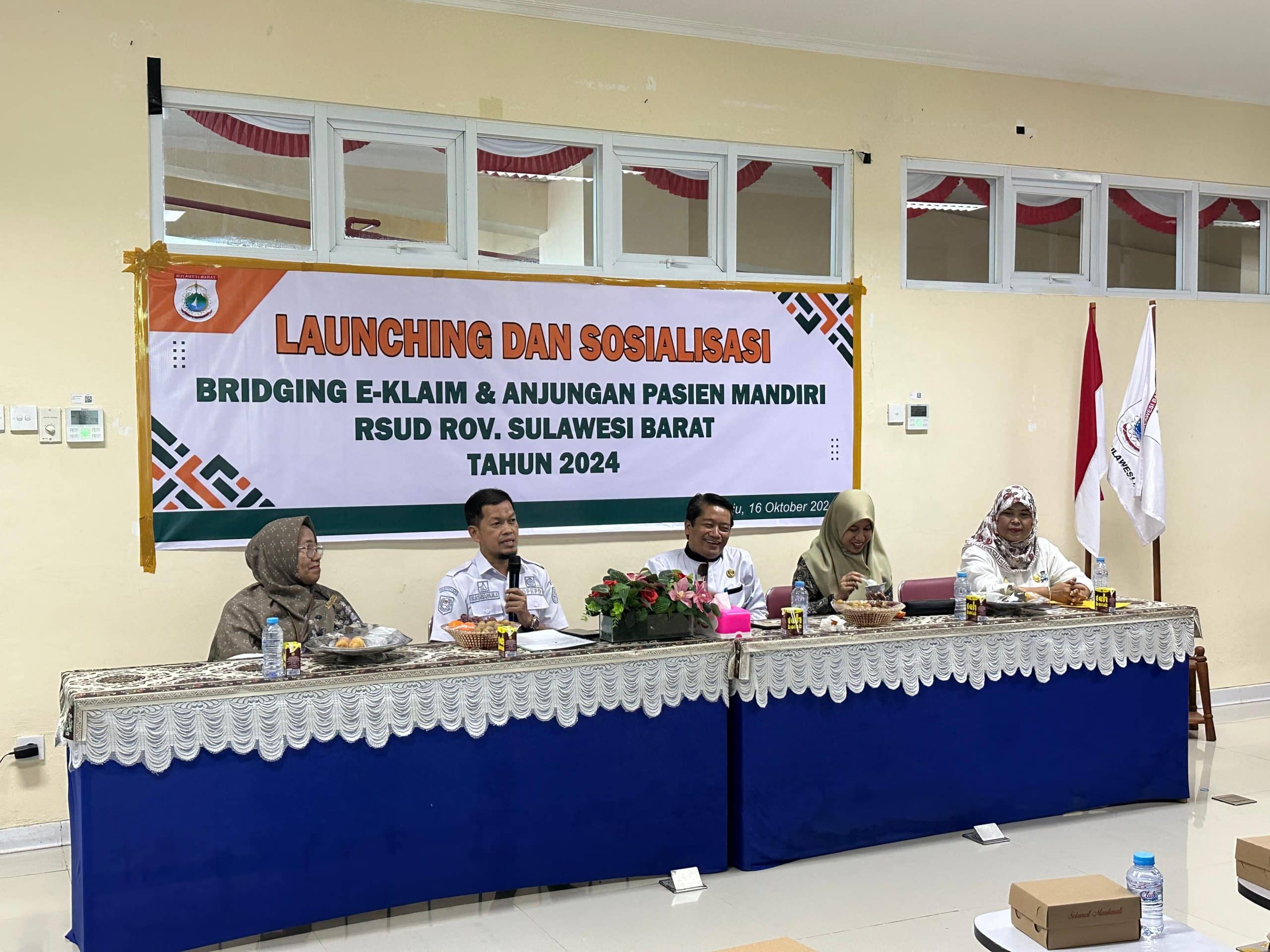 MAMUJU,PS — Guna meningkatkan mutu layanan di Rumah Sakit Umum Daerah Provinsi Sulbar, RSUD bersama Dewas dan BPJS menggelar launching dan sosialisasi brigding E -Klaim dan Anjungan Pasien Mandiri di RSUD Provinsi Sulbar, Rabu 16 Oktober 2024.