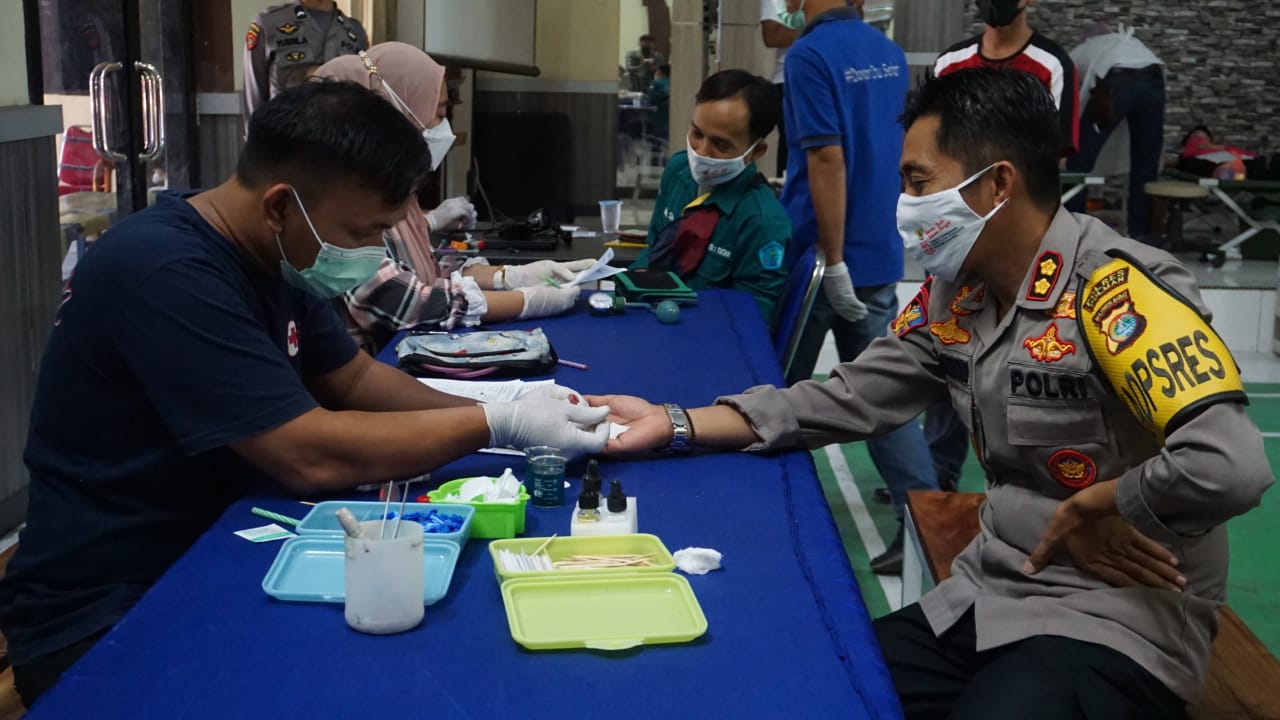 Giat dilakukan di aula Ruppatama Mapolres Polman, Selasa (22/6/2021) bekerja sama dengan PMI cabang Polman. Sebelumnya, acara dibuka langsung oleh Kapolres Polman AKBP ARDI SUTRIONO, S.IK. didampingi oleh Waka Polres Polman KOMPOL DOUGLAS HAROLD. A.T, SE, S.IK