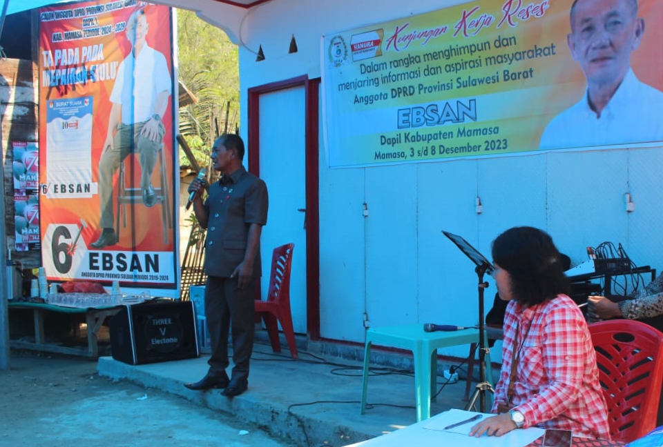 Mamasa,penasulbar.co.id – Anggota DPRD Provinsi Sulbar, Dapil Mamasa, Ebsan melakukan reses di Desa Rantepuang Kecamatan Sesenapadang, Kabupaten Mamasa, Sabtu (2/12/2023).