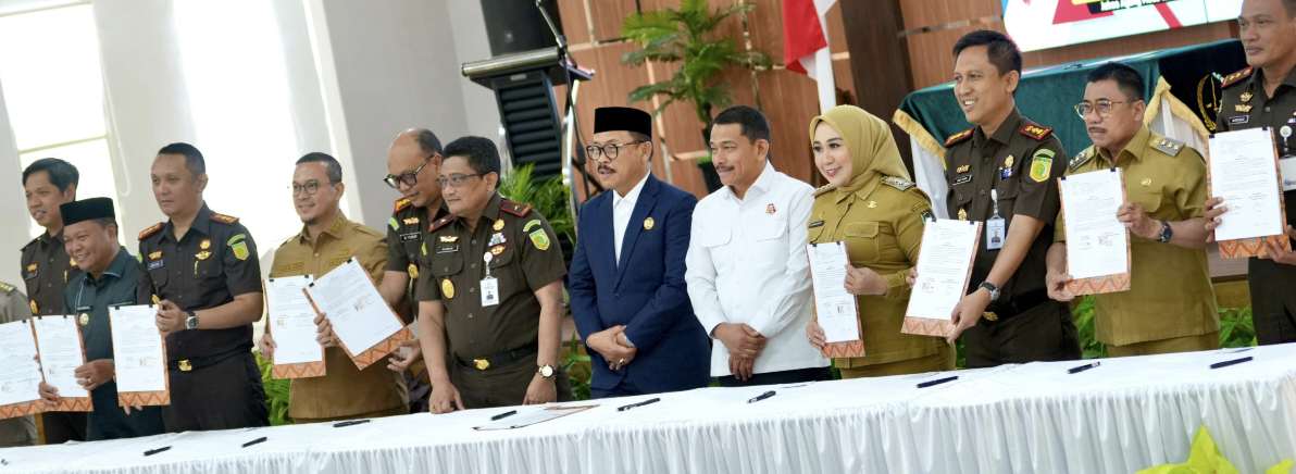 Penandatanganan MoU Pemprov Sulbar dan Kejati Sulbar dalam rangka pelaksanaan pidana sosial yang dihadiri Bupati se-Sulbar Foto:hms