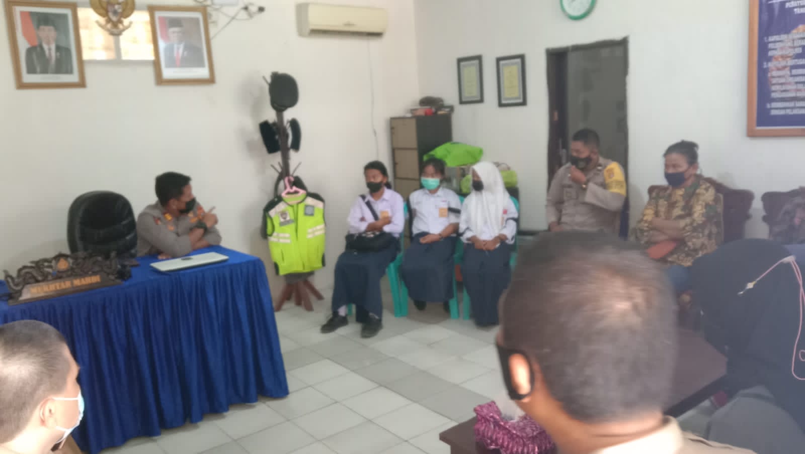 Kapolsek Polewali AKP Mukhtar Mahdi yang di dampingi Bhabinkamtibmas Polewali Aipda A. Rikmal, SH, Melaksanakan giat Problem Solving (mediasi) terkait masalah tindak pidana penganiayaan /perkelahian antar siswa sekolah yang viral di medsos yang terjadi pada hari rabu tanggal 22 September 2021.