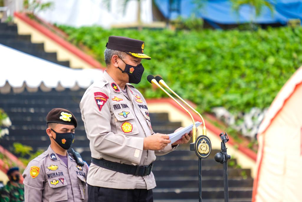 Upacara apel gelar pasukan yang berlangsung di Mapolda ini juga dihadiri oleh tamu undangan lainnya seperti TNI, Dinkes, Jasa Raharja, Satpol PP, Tim Gugus Covid dan sebagainya.